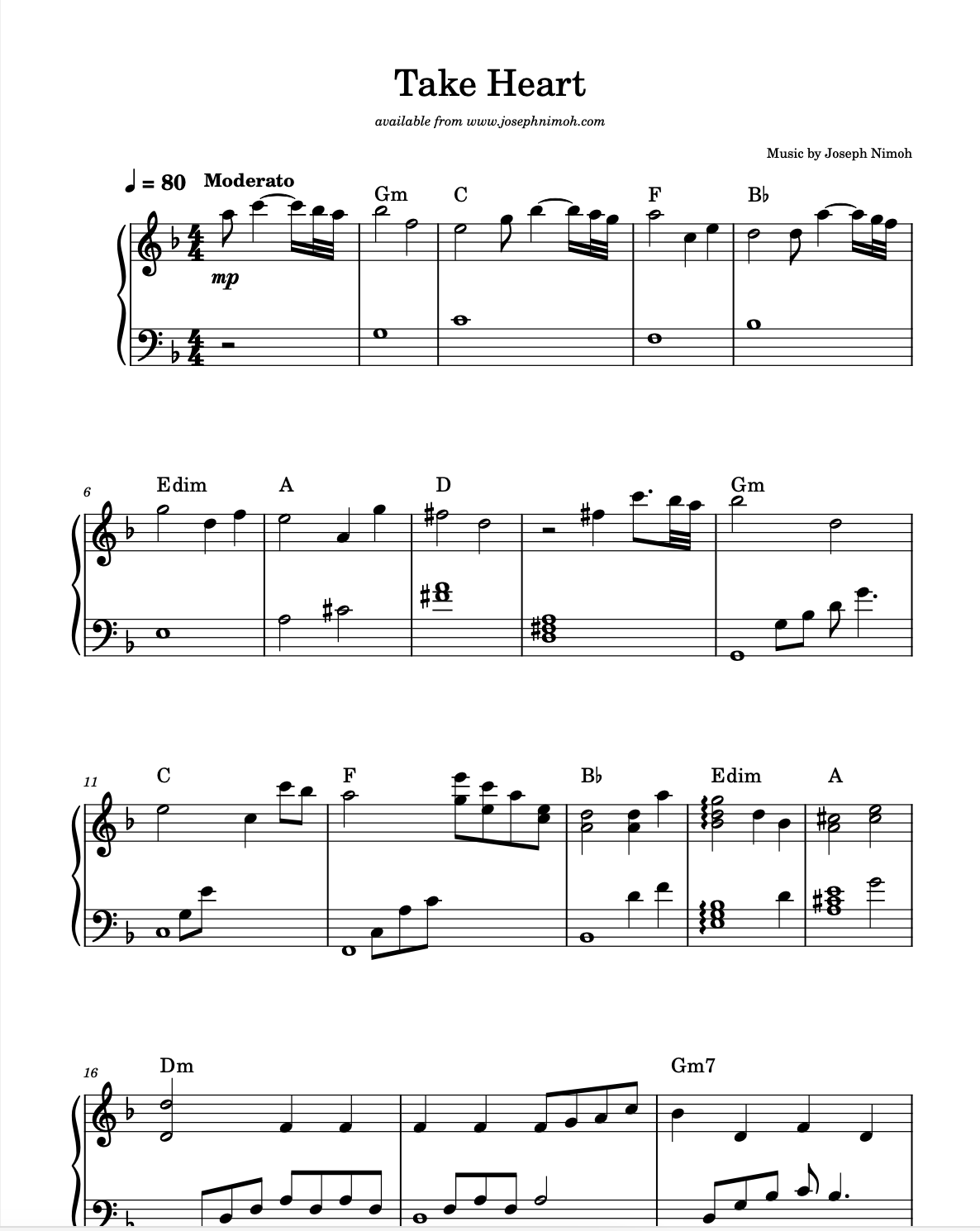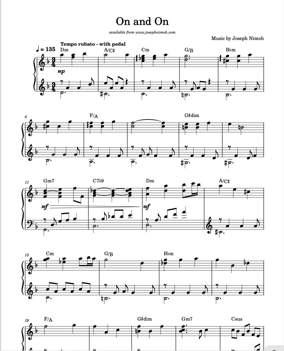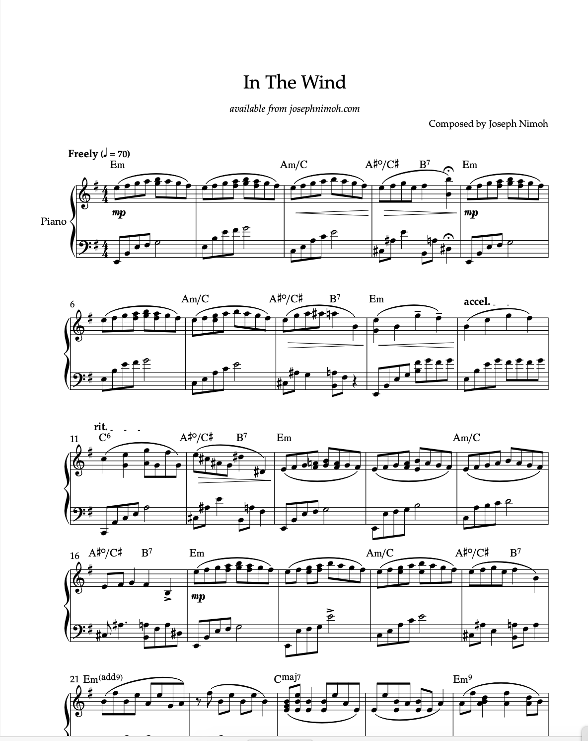 Pianist, Joseph Nimoh brings his creative harmonic approach, improvisational spirit and delicate soulful touch to these 12 beautiful and inspiring original compositions. This collection highlight the expressive nature of Joseph Nimoh’s piano writing. These selections are perfect for recitals, preludes, relaxation, quiet meditation and reflection, and finding stillness in everyday life. 46 pages.