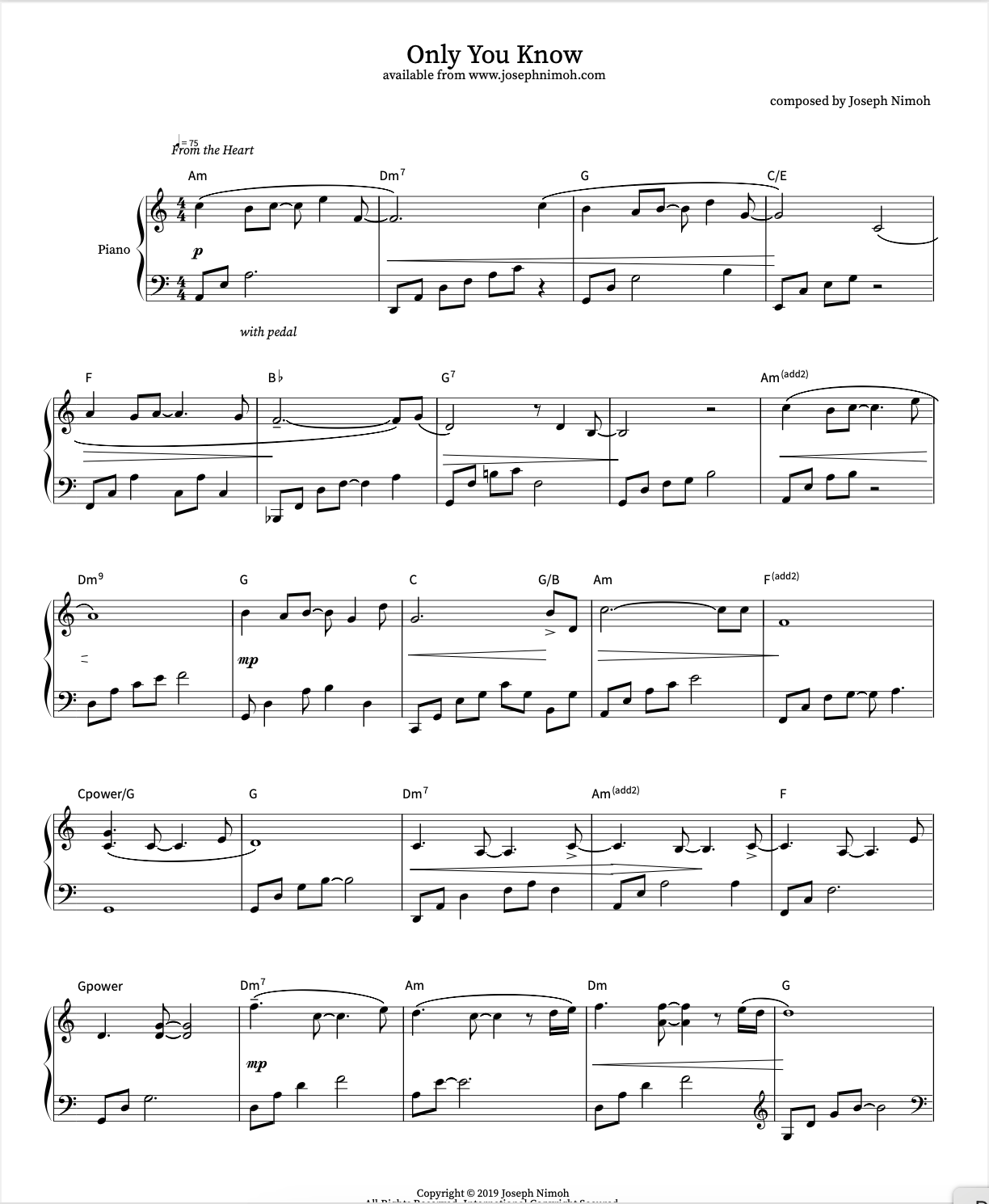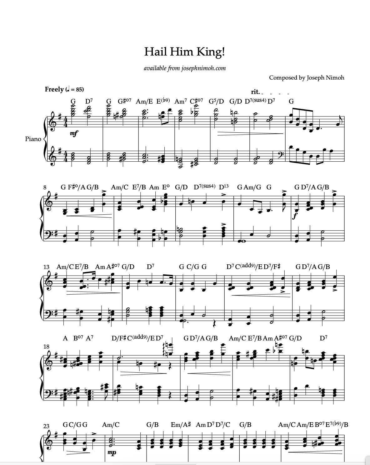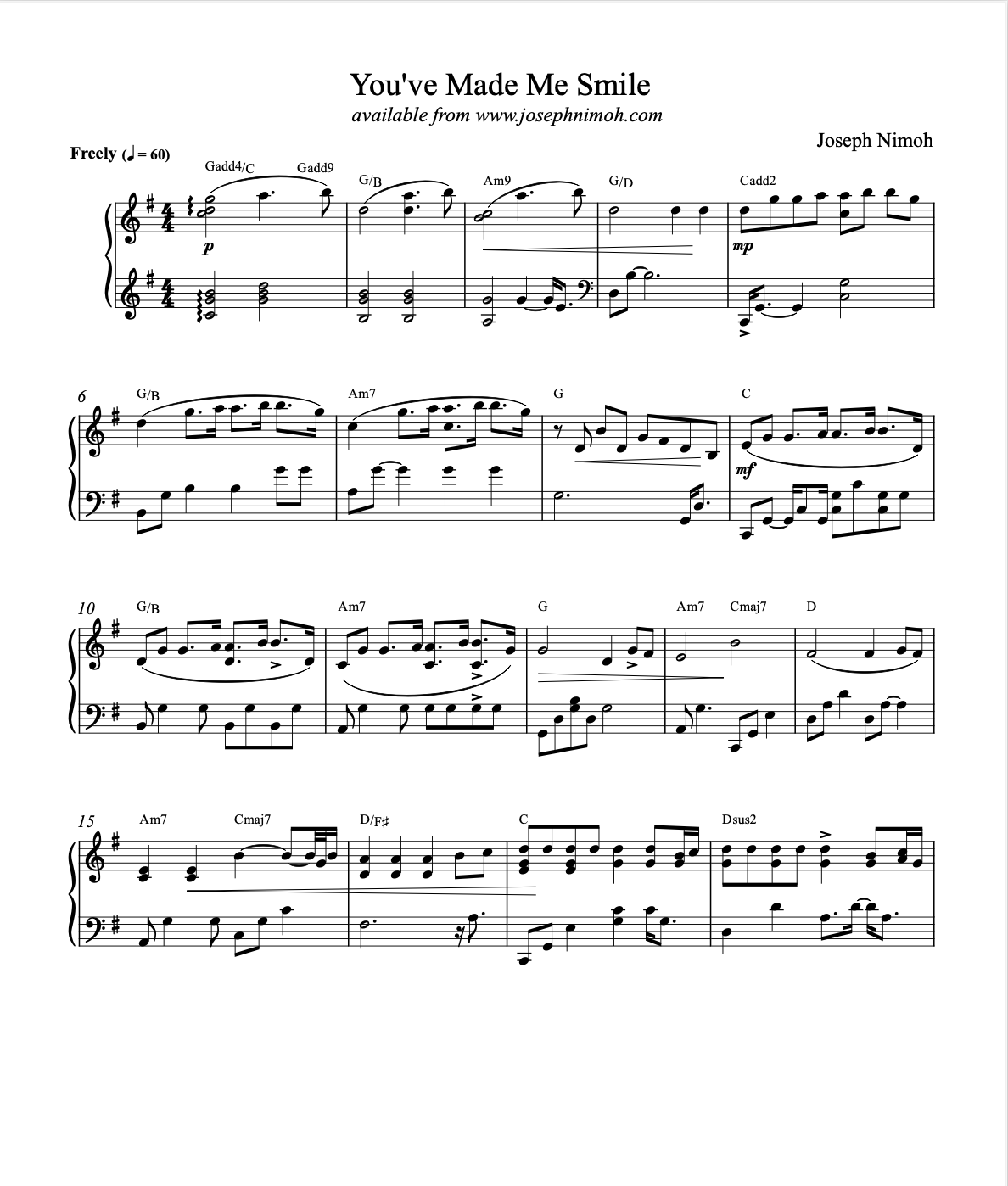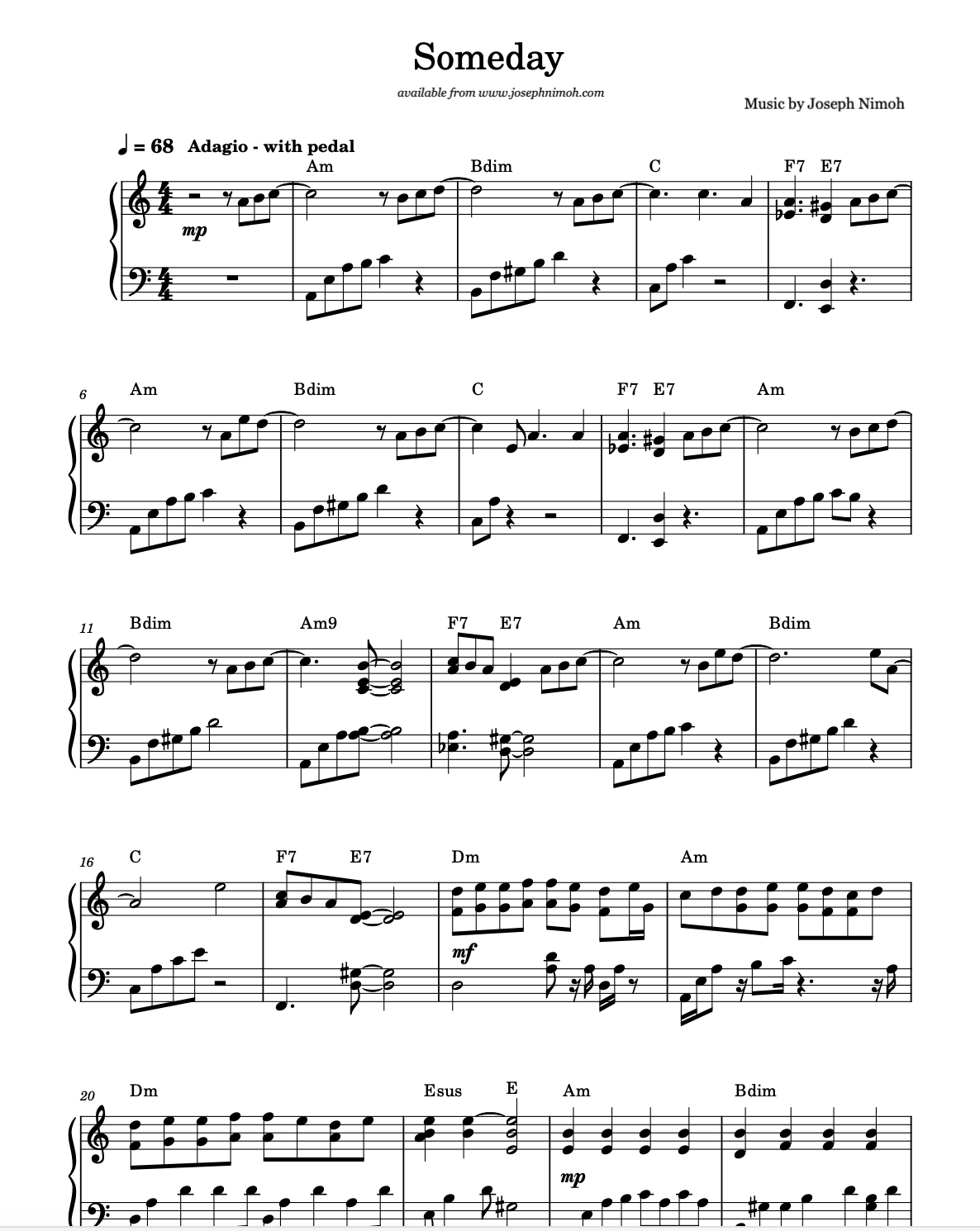 Pianist, Joseph Nimoh brings his creative harmonic approach, improvisational spirit and delicate soulful touch to these 12 beautiful and inspiring original compositions. This collection highlight the expressive nature of Joseph Nimoh’s piano writing. These selections are perfect for recitals, preludes, relaxation, quiet meditation and reflection, and finding stillness in everyday life. 46 pages.