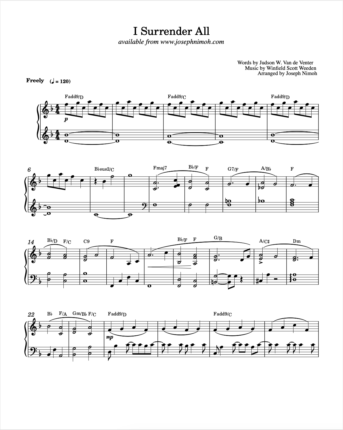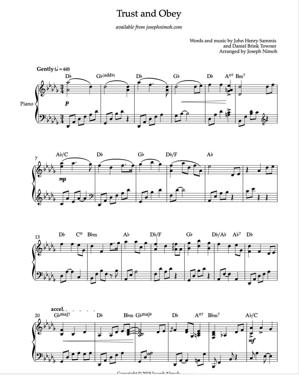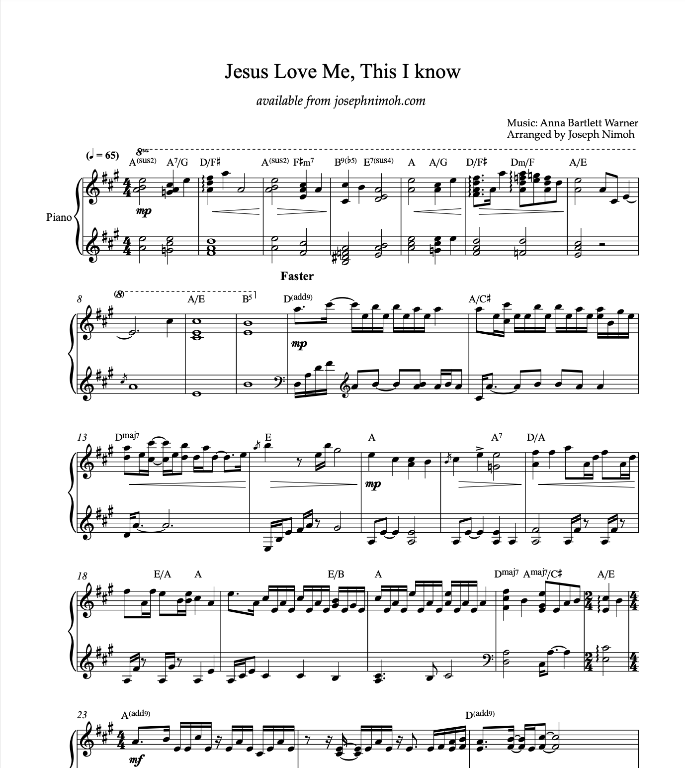Experience eight timeless hymns reimagined by pianist and composer Joseph Nimoh. With a refined blend of modern harmonies, subtle jazz influences, and gospel warmth, Joseph breathes new life into these cherished classics. Each arrangement captures both the spiritual depth and musical beauty of the hymns, making this collection perfect for church services, preludes, offertories, recitals, or moments of quiet reflection.